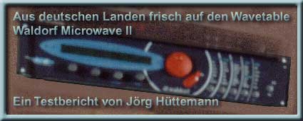 Ende der 80er wurde mein Wunschtraum wahr. Die Macher des Wave2 gründeten die Firma Waldorf und präsentierten der Welt den Microwave. Einzigartig im Klang, und technisch ganz weit vorne. Ein 68000 Prozessor (Atari /Amiga) für den digitalen und Curtis Chips für den analogen Bereich besorgte hohe Signalverarbeitung und einen oberfetten Sound. Endlich konnte ich mir den Traum vom PPG leisten und...er war besser als der PPG. Fortan schmückt dieses blaue Ding mit den roten Tupfen mein Rack produziert für alle Stilrichtungen der Musik geile Sounds und dient beim Test und Bugcheck ( MIDI Timingmessungen ) als Referenz. Für das neue Jahrtausend setzt Waldorf jetzt die Tradition fort. Was kommt da auf mich zu? Da der Microwave II nun komplett DSP gesteuert ist kann von einem Hardwareupgrade nicht die Rede sein. Er ist eine Reinkarnation. Erster Überblick Auf der Front des MW II finden wir ein Bedienfeld als Matrix, die sehr logisch und direkt mit 5 Tastern und dem Hauptendlosregler zu bedienen sind. Hierzu vier weitere Endlosregler die im direkten Bezug zum Display über ihnen stehen. Hinten gibt’s das MIDI Trio und zwei Stereoausgänge. Technische Daten 10 Stimmen und 8-fach polyphon. Die Blockübersicht: 2 Wavetable Oszillatoren mit 64 Wavetables je 63 Waves, ein 12 und 24 db Filter in 6 Varianten, ein (weicher) 6 db Filter als Hoch- und Tiefpass. Im bis zu achtfachen Multimode lassen sich die einzelnen Instrumente individuell in Lautstärke, MIDI-Kanal, Panorama, Out-put, Transpose, Detune, Velocity- und Key- Window sowie umfangreichen Arpeggiator einstellen. Gemeinsam die Lautstärke, 4 Controler und das Arpeggio-Tempo. Systemupdates gibt es im Internet als SMF, sogar die Adresse finden wir auf der Systemseite im MW II! Eben-so wichtig: die installierte Version (mit Datum und Uhrzeit !!!) des Betriebs-systems im FlashROM. Intuitive Bedienung/ Klang (First Contact ) Mann, haut der einen um: fett, dick, grell, warm, klar, zart und weich.. wie anders kann man einen so perfekten Sound beschreiben? Allein schon die Werk-Presets zeigen die Vielfalt der klanglichen Farbigkeit! Die Klänge sind auch einzeln ohne viel layering prägnant und kraftvoll. Ich war bezüglich der Bedienung nach einer halben Stunde "drin". In der zweiten Session waren dann nahezu keine Fragen mehr offen. Die Bedienoberfläche ist logisch und selbsterklärend. Leute, die gerne eigene Sounds programmieren werden sich hier sehr wohl fühlen. Die deutsche Bedienungsan-leitung ist sehr ausführlich und gut zu lesen. Gegenüber allen anderen virtuell analogen hat er aufgrund der Wavetablesynthese, die nur er bietet, viel mehr Wellenformen ( 4032 ! ) und durch die er auf vielerlei Weise scannen kann. Grenzwerte Gerade im typischen Einsatzgebiet des MW II (Dance/Techno/Elektronic) ist ein schnelles und exaktes Timing absolut das wichtigste.........Um das Timingverhalten des MW II zu testen schloß ich ihn direkt, ohne Patchbay, an meinen Logic Sequencer an. Schon beim MW I kann man in einem Multisetup, während der Sequencer läuft die einzelnen Sounds editieren. Der MW II setzt noch einen drauf: jeder Klangparameter sendet seine Veränderungen als Controlerdaten in die Außenwelt. Das reizt natürlich, extremes Editieren mit dem Sequencer aufzuzeichnen und als Loop wiederzugeben. Das gleiche auch noch auf mehreren Spuren. Der MW II ließ sich aber nicht aus der Reserve locken, die simple 16tel Hihat Figur, die ich als Referenz auf dem achten Kanal laufen ließ, blieb straight im Takt. Einzig für Programchange Befehle und das Wechseln der Wavetables nahm sich der MW II etwas Zeit. Für die Fälle eines Notenhängers gibt es den Power Switch, der bei kurzem Antippen einen kurzen All-Notes-Off Befehl ins Gerät sendet, ein schönes Detail Eine Messung Um das Timingverhalten zu bestimmen habe ich mir im Logic Sequencer einen Testsong erstellt, zwei Events, einmal ein 10-Noten Cluster, alle Noten gleich und dann mit der gleiche Einzelnote. Im HD Recorder aufgezeichnet messe ich im Wave Editor die Länge der beiden Samples. Die Differenz der Länge der beiden zeigt die Verzögerung zwischen der ersten und der zehnten Note.